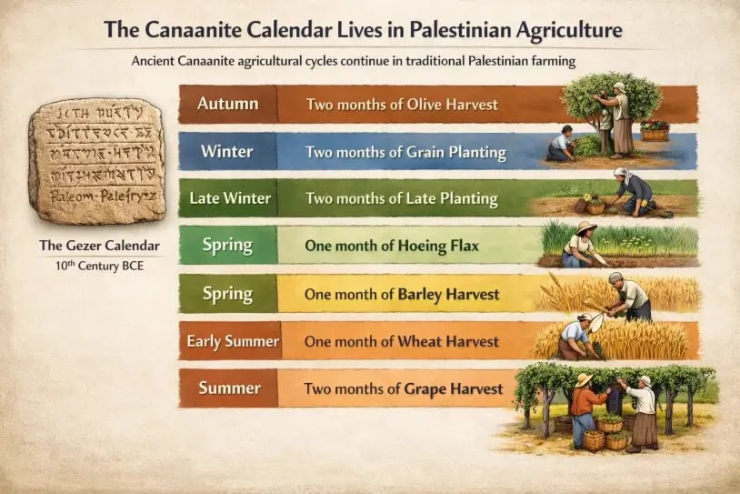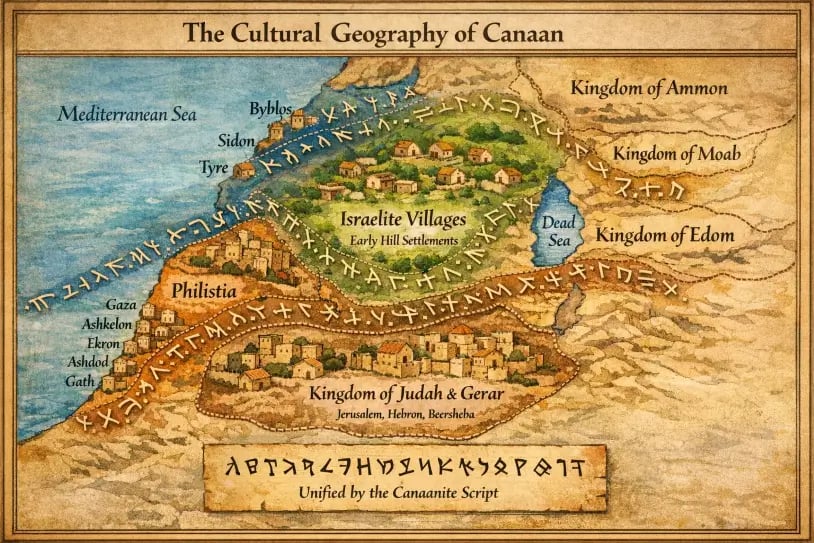 الفخار والمنازل والمصاطب والأدوات من العصر الحديدي مطابقة لتلك من العصر البرونزي. لغة يهوذا، العبرية، هي لهجة كنعانية مكتوبة بخط كنعاني. دين إسرائيل المبكرة نما من التقاليد الكنعانية، وليس ضدها. شقف عراد، المكتوبة من قبل جنود ومسؤولين يهوذيين، تُظهر مجتمعاً تحدث وكتب وتعبد ككنعانيين حتى أثناء تبني هويات سياسية جديدة. هذا مهم اليوم. يعني أن الكنعانيين لم يختفوا. لم يُستبدلوا. أحفادهم يعيشون في المنطقة: الفلسطينيون والسامريون ومجتمعات شامية أخرى تحمل الذاكرة العميقة لهذه الأرض. الاعتراف بالاستمرارية الكنعانية الأصلية دقيق تاريخياً. إنه عمل من أعمال العدالة، يستعيد قصة طُمست عمداً لآلاف السنين.