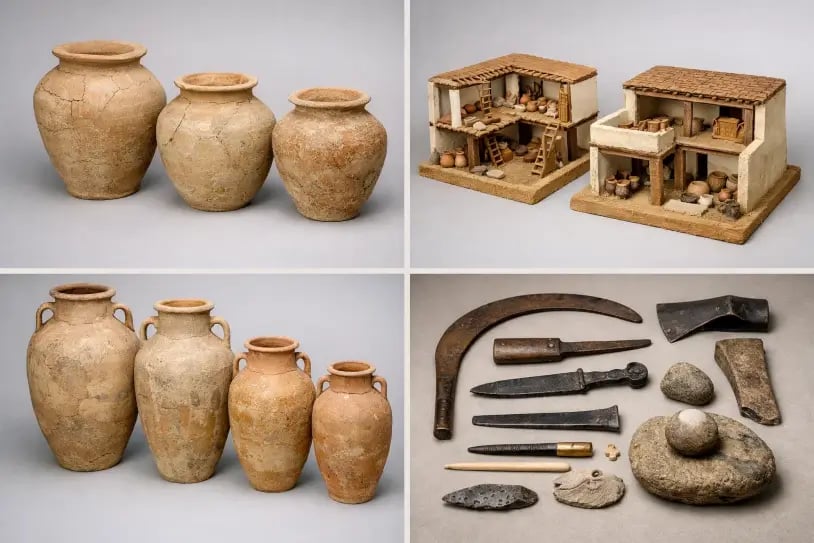 نفس أشكال الفخار (بما في ذلك "الجرار ذات الحافة المطوقة" الشهيرة التي سُميت خطأً "إسرائيلية")