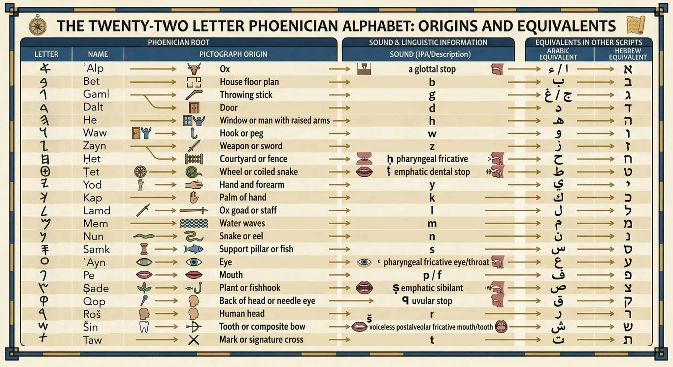 Long ago, in the bustling Sinai Peninsula and the Levant, someone had the bright idea to make reading a little less like deciphering an ancient curse. Around 1800–1500 BCE, instead of memorizing hundreds of squiggles found in Egyptian hieroglyphics (over 700-squiggles!) or Mesopotamian cuneiform (over 600 squiggles!), the clever Canaanites slimmed it down to just 22 consonant symbols. Each came from a pictograph whose name conveniently started with the sound it represented, which is a delightful trick called the acrophonic principle. This genius hack spread like gossip around the Mediterranean. The Greeks threw in some vowels, the Romans passed it along, and voilà, the Latin alphabet we know today was born. Even the Arabic alphabet originating from Yemen can trace its family tree back to this ancient stroke of brilliance. Turns out, Palestinian ancestors were the original minimalist trendsetters.